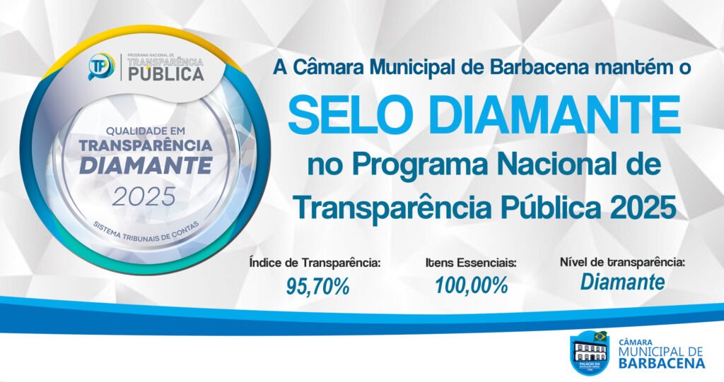 A Câmara Municipal de Barbacena recebeu o Selo Diamante de Qualidade em Transparência Pública, maior reconhecimento concedido pelo Programa Nacional de Transparência Pública. A certificação foi entregue ao presidente do Legislativo, Amarílio Andrade, durante cerimônia promovida pelo Tribunal de Contas do Estado de Minas Gerais, em Belo Horizonte. O selo reconhece o alto nível de […]