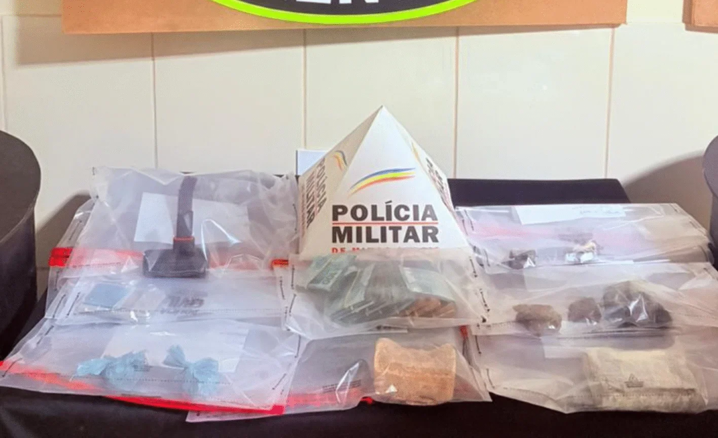 No local, a PM encontrou duas porções de skunk, meia barra de cocaína, três tabletes de maconha, meia barra e duas pedras de crack e uma balança de precisão. Além disso, também foi encontrada a quantia de 13 mil reais em dinheiro. Todo o material foi apreendido e encaminhado à delegacia para registro e investigação.
