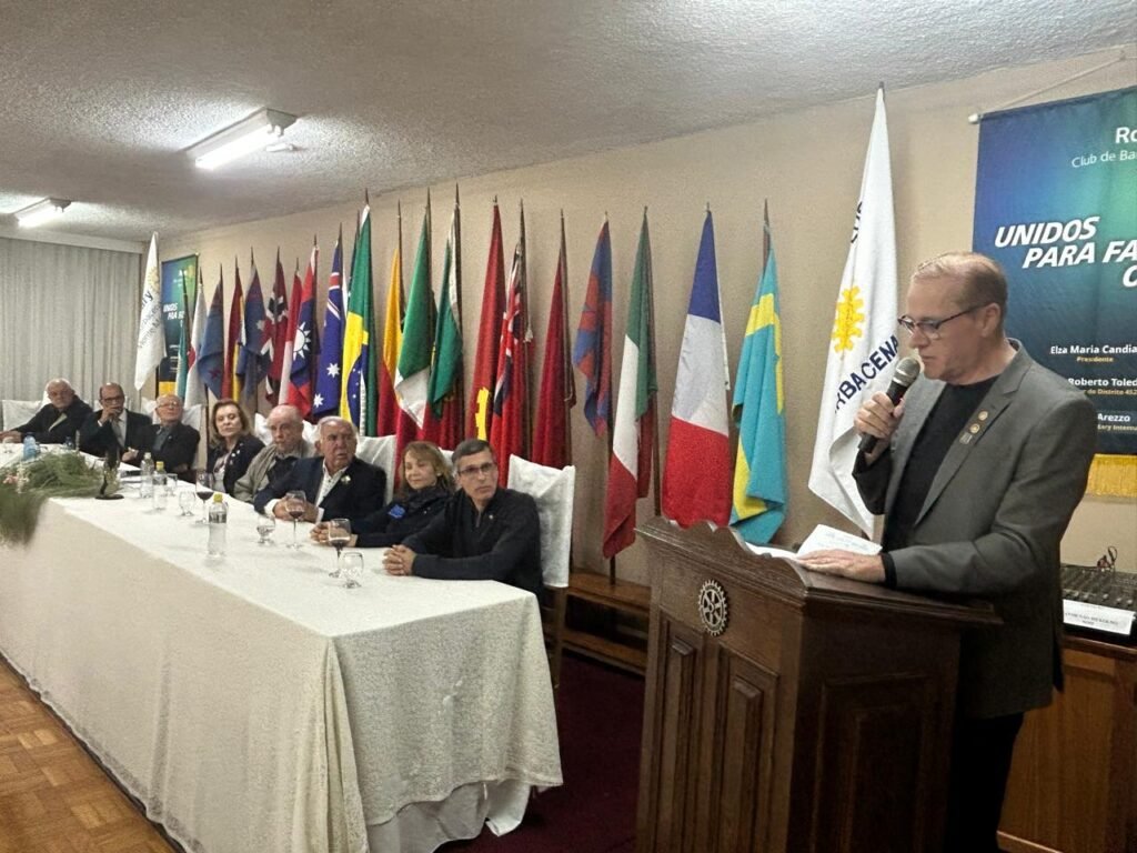 A noite também marcou o retorno ao quadro associativo do Rotary do Dr. José Eugênio Dutra Câmara Filho, médico gastroenterologista e professor da FAME há mais de 30 anos. Após ser empossado, ele proferiu a palestra que conduziu a todos a uma verdadeira viagem no tempo, revisitando a história da medicina barbacenense e destacando marcos institucionais e avanços tecnológicos que transformaram a assistência à saúde no município.